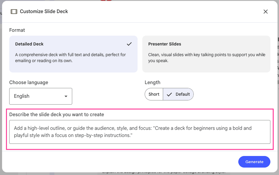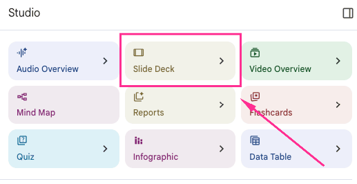 5 - Click the Slide Deck option in the Studio panel, and use this prompt: